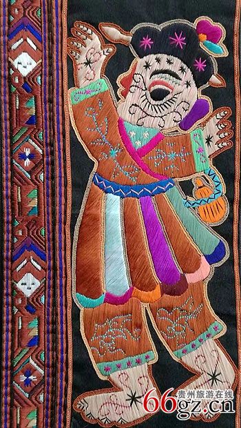 古老苗绣中的 “人” 一般四肢五官比例结构不合常理 ,只是个人类符号 ,是精神意识的表达 ,在其“态”不在于“形”。