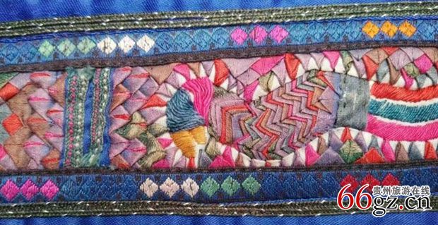 台江革一的苗族堆绣背带的鸟、鱼图案