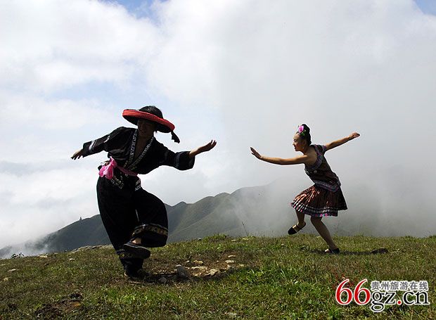 ②具有明显娱神性的特征。苗族视鼓为祖,祖的神灵寄息于鼓中。跳木鼓则是为了怀念祖先,希望自己时时能和祖先的神灵在一起;因而在祭鼓跳木舞中,人们既庄严肃穆,又跳跃欢快。庄严肃穆的是:在请祖先神灵来世的过程中,人们生怕做错事,得罪神灵,不肯呈现,而小心冀冀,严肃认真;跳跃欢快的是;一旦请来祖先神灵和人们在一起时,人们就欢声雀跃,舞越跳越有劲,所以反排木鼓舞具有明显的娱神性。