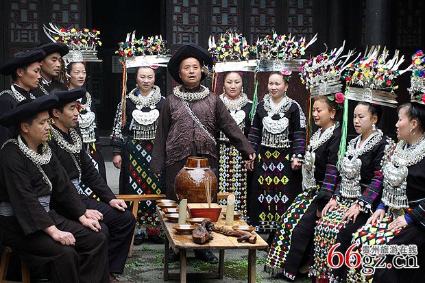苗族古歌大多在鼓社祭、婚丧活动,亲友聚会、节日等场合演唱,演唱者多为中老年人、巫师、歌手等,酒席是演唱古歌的重要场合。以前一有重要的走客活动,整个家族、“酒塘”、整个村寨都去对歌,客主双方都会准备好歌手,酒席上你唱我答,互相比赛。若双方势均力敌,有时要唱三天三夜。