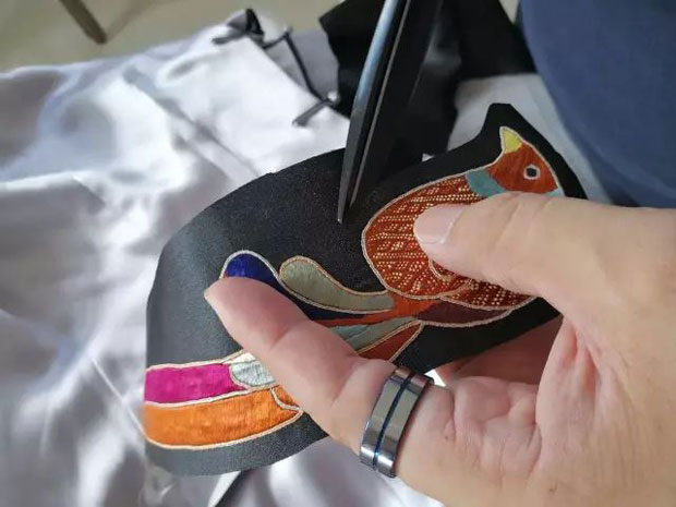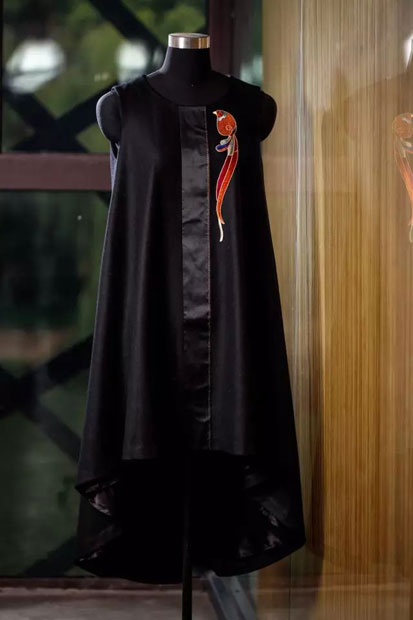 海派旗袍设计师苗海燕也被这种古老的技法所感动,在PACC的推动下携手苗绣传承人杨再美,为幸福鸟打造专属礼服。