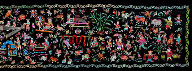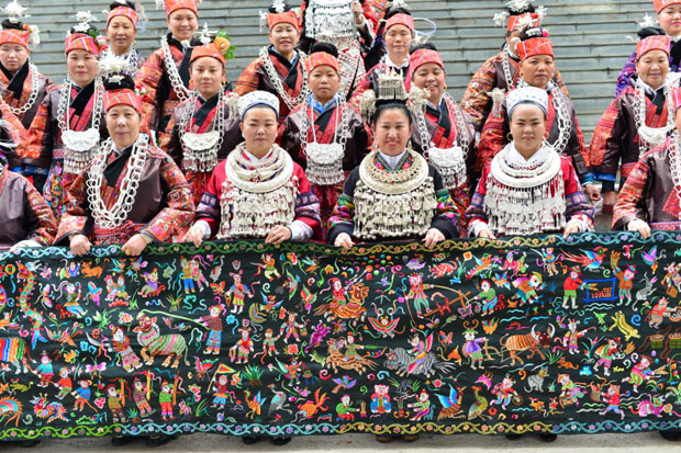 2017上海设计之都活动周期间,在上海展览中心西一馆,22米长的《锦绣台江》绣卷十分引人注目,它是由贵州省黔东南州台江县百名非遗苗绣传承人历时一个多月完成。绣娘们用平绣、打籽绣、皱绣、扭角绣、破线绣、辫绣、锁绣、马尾绣等针法,绣制出了划龙舟、牛打架、纺织布、染绣等一幅幅生动的苗家生活场景,首次展现在上海观众眼前。苗族刺绣代表性传承人杨再美也出现在上海设计周展览现场,向观众介绍这幅被誉为“苗族人的清明上河图”的巨幅苗绣。