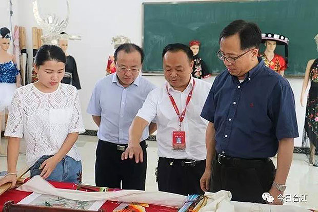 在台江职校,王黎光首先欣赏了台江籍知名优秀歌手潘兴周、阿邰等音乐人的演唱展示,对他们美妙的天籁苗音表示了高度的赞可。随后,他通过观摩苗族刺绣进课堂、苗族舞蹈进课堂、苗族银饰进课堂等,详细考察了台江职校的苗族文化课堂开展情况。他表示,少数民族文化遗产是中国不可多得的璀璨财富,而教育则是文化传承的重要途径,台江职校将苗数民族文化融入课程之中,使台江的苗族学生在教育中可以更加深入地了解自己民族文化的精髓,对于培养其民族自信心与民族精神认同感具有重要的意义。他希望台江职校继续坚持做好地方特色校本课程,努力把学校打造成为独具特色魅力的优秀学校。