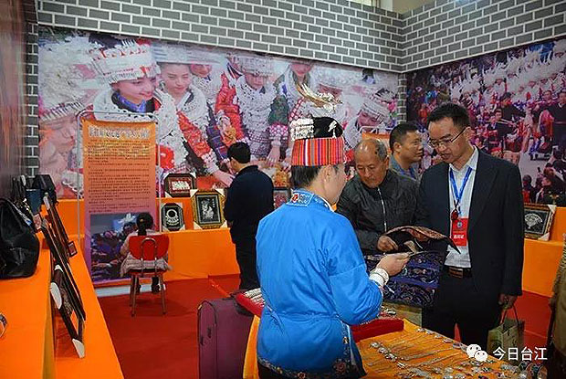 2017中国(贵州)国际民间工艺品博览会暨第六届中国•凯里银饰刺绣博览会11月17日在凯里开幕。台江县锦绣图腾工艺品有限公司、台江县水姑娘民族工艺品有限公司、台江县仰黎苗族织绣工艺坊等9家企业代表台江参加此次博览会。