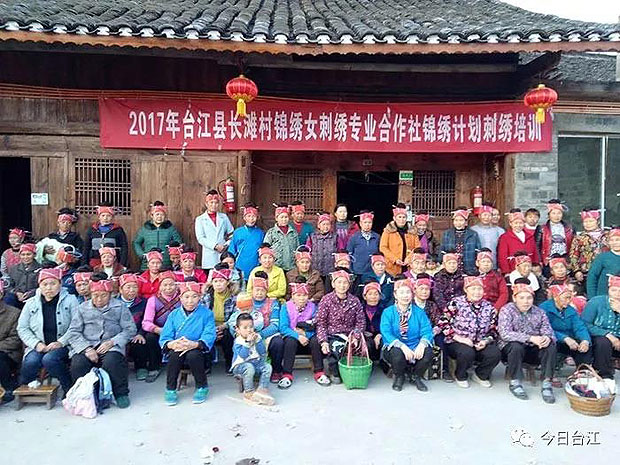 为实现“培训一人、就业一人、增收一户、富裕一方”目标。12月4日,台江县老屯乡长滩村锦绣女刺绣专业合作社在长滩村举办了2017年“锦绣计划”培训。来自该村周边农村建档立卡贫困(低保)家庭妇女、贫困户及初中高中毕业学生50人参加了培训。此次培训为期7天,对妇女特色手工业锦绣计划目的和意义、苗族刺绣元素如何与现代化时尚结产品融合的理论知识及设计作品展示等相关知识进行培训。