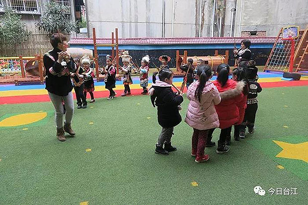 为更好展开台江苗族文化进课堂活动,各班教师组织幼儿们积极开展各种民族传统节日活动,比如跳反排木鼓舞、唱苗歌、绘画苗族服饰、刺绣、吹芦笙等等,一系列的苗族民间游戏活动形式多样,内容丰富多彩。幼儿体验民间游戏带来的乐趣是现代玩具所无法比拟的,它能启发儿童智力,拓展思维,增强毅力,对锻炼身体、培养责任和增强合作意识具有极大的作用。