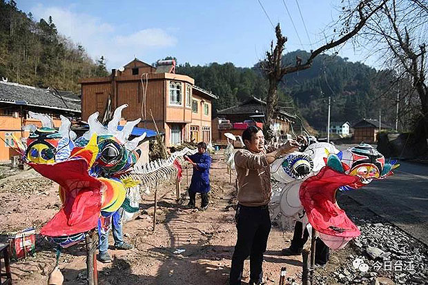 新春临近,台江县温泉村打革屯下屯村民加紧编制节日彩龙。每逢春节、元宵节等重大节日,台江苗族同胞素有“舞龙嘘花”的习俗,当地群众舞起彩龙,放起烟花,欢庆佳节。