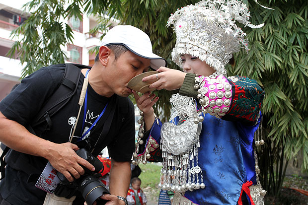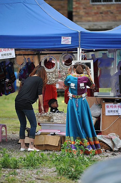 苗族姊妹节上,现场拍照摊点。摄影:喻勇
