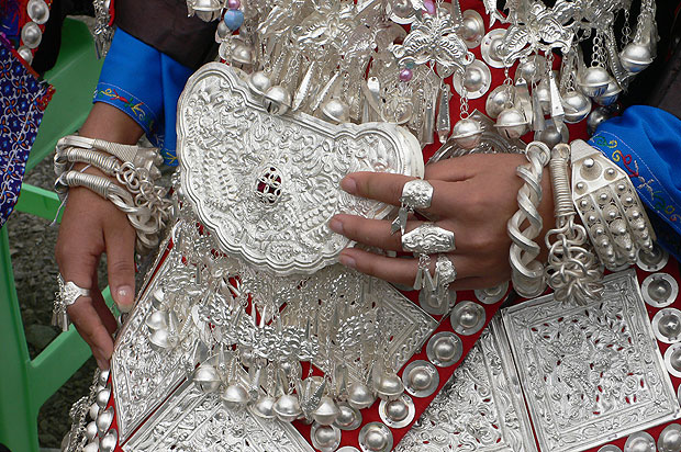 5、苗族姊妹节具有很高的审美价值。姑娘们穿的每一件刺绣花衣从它的针法工艺到整件的构图布局、色彩搭配以及变意夸张的艺术形态都有极高的艺术美的表现;又从姑娘们佩戴的银饰打造工艺和图案造形,件件徐徐生辉,活生欲出,再从姑娘们集体穿戴活动的整体效果看,节日期间,施洞地区都是一片银白的海洋,花一样的世界。因此,苗族姊妹节具有很高的审美价值。