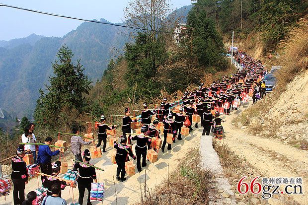 台江县台盘乡排内苗寨被称为云端上的苗寨,这里海拔高,视野开阔,初春的早晨显得格外妖娆,风景特别迷人。当早晨的第一束阳光照射这里的时候,静谧的大山云雾缭绕,苗寨如梦如幻,甚似一幅水墨山水画呈现在眼前。