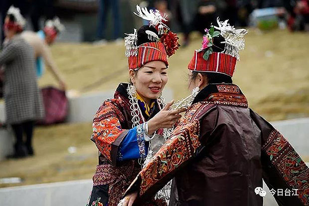 当日,台江县施洞镇偏寨村举行民间舞蹈活动,来自周边的施秉县、剑河县近千名苗侗同胞欢聚一堂,以苗族飞歌、情歌对唱、踩木鼓舞等的活动形式共同欢庆新春佳节。(刘开福)