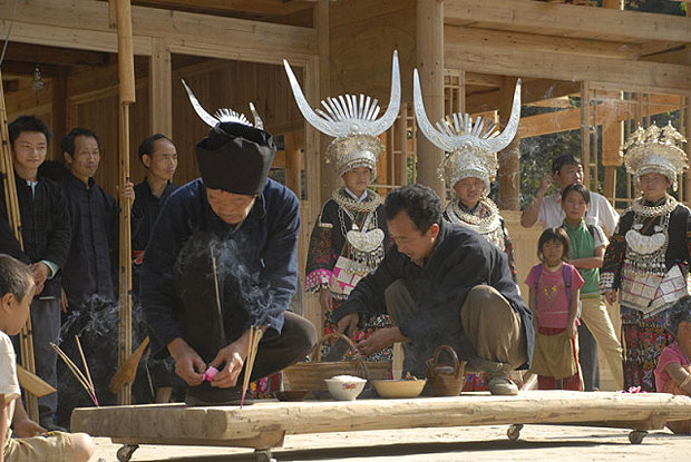 祭桥也称为“敬桥”,是台江苗族一年中很热闹的节日,时间在农历的二月初二。到了“敬桥”这天,当地苗族不分男女老幼都穿上盛装前往“敬桥”。尤以儿童穿戴一新,胸前都挂个网袋,盛着若干个“红蛋”,堪称为苗族的“儿童节”。