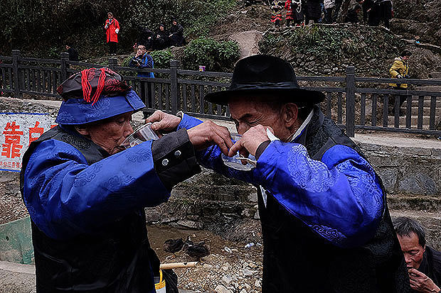 两位寨老相互敬酒