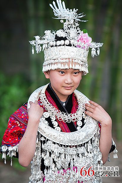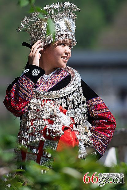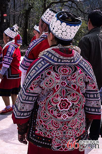 “苗族住山头,壮族住水头,汉族住街头”。其实,苗族人并非最初就住在山里头,苗族服饰的发展史同时也是一部饱含先人血泪的“迁徙史”。在苗族历史中,连绵不断的战争和其他政治原因不仅让这个民族遭受了战争之苦,同时也让这个民族进行了大幅度、远距离、长时期的迁徙。由东向西、由北向南的大迁徙就有4次。如果见到苗族妇女身穿有牡丹花图案,就标志着她们的祖先来自北方,牡丹的国色不仅留存在他们迁徙的记忆里,更被绣成图案装饰在每一个妇女的衣着上,表以不忘祖先之意。此外,苗族银饰中的饰物“响铃”,不论是项圈还是挂牌、吊牌、围腰吊饰都常常佩有,这也是一种“迁徙遗风”。意为在响铃声中,人们走过了一道道山水,前呼后应,永不失散。”