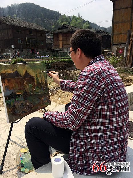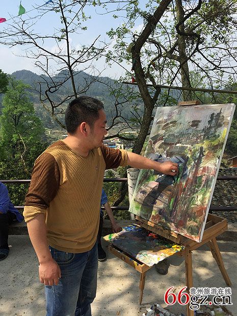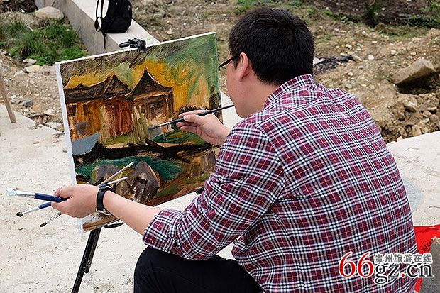 青年油画家、贵州省美术家协会会员,贵州省青年美术家协会会员谢偲在写生