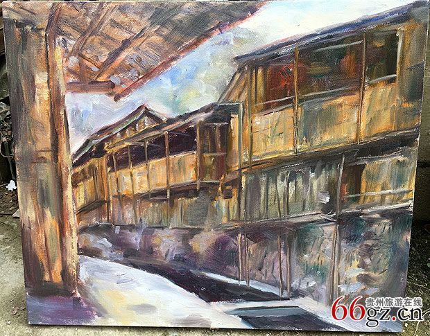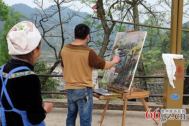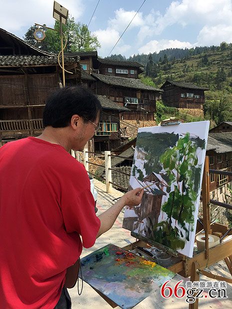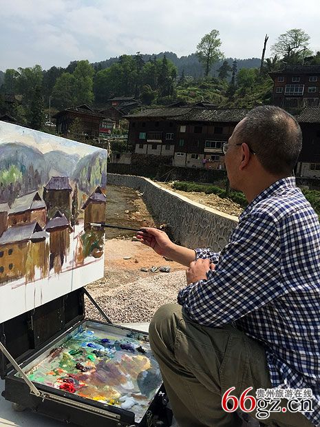 4月10日,气温骤降,人们还没有从前一天的热浪中缓过神来,迎面便扑来了阵阵寒意。按照原计划,这一天画家们要到雷公山下的红阳苗寨写生作画。红阳苗寨坐落在坝子边缘,一座简易木桥搭建在小河之上。农历二月初二红阳苗族敬桥节时,上百名苗族妇女,姑娘们身着盛装,成群结队从木桥上走过,场面十分壮观,画家们虽然没有看到这样的景象,但凭着他们娴熟的绘画技艺和独具慧眼,在红阳苗寨一定能画出更美的图画。(本文图片提供:采风团成员)