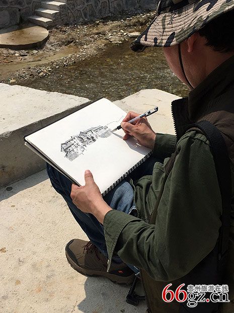 贵州师师大美术学院,贵州省美术家协会副主席、国家二级画师、著名版画家朱世伟在写生