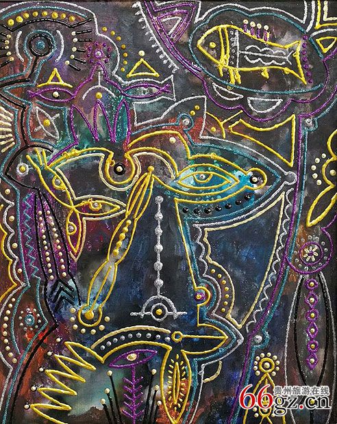 《绣念系列》之一 40cm×50cm 布面油画框+丙烯+水粉+立体勾线笔