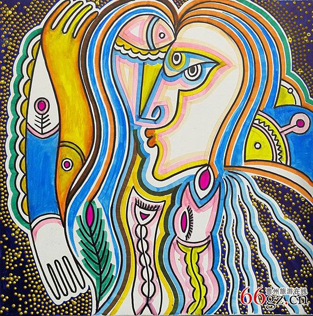 2016年9月我有幸来到台江挂职,这对我来说是无比的荣幸,一直深爱和痴迷的民族文化总是如一双巨大无形的魔手,将我拽入其中,并为之沉醉。特别是丰富多彩的苗绣图案其中所隐藏的历史悠久、厚重而博大神秘的密码信息,让你沉浸下去就欲罢不能,她犹如一座巨大的营养池让我如醉如痴。记得是从九十年代我就从简单的喜欢和好奇而爱上苗绣,或许是源于自己学美术的原因,也或许是自己本就是黔东南地区出来的苗族,哪些神奇得让我心生敬畏和膜拜的刺绣技艺和图案不知不觉中就对我的绘画、设计产生了潜移默化的影响,也可以说是滋养吧!以至一位南京的美术批评家看了我的绘画作品后问我是不是苗族时,我问他怎么知道的,他说是我的作品告诉他的,他说我的绘画作品里有着与生俱来的苗族“胎记”,我惊讶他的判断的同时,也非常认可他的评论。特别是他所说的“胎记”一词,让我觉得真是再恰当不过了!