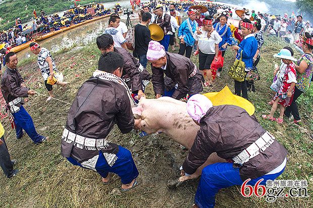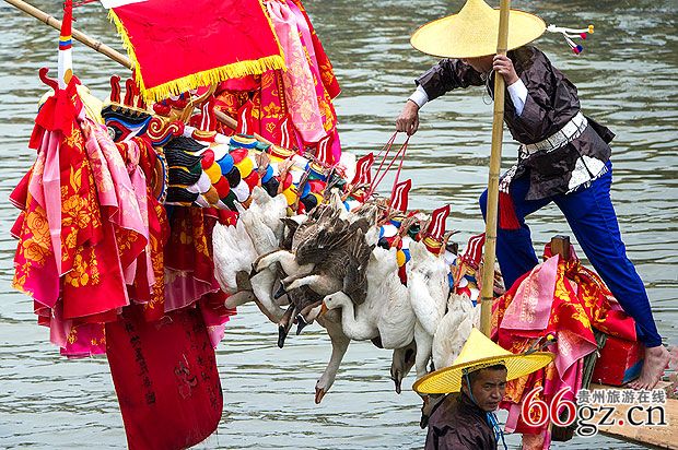 贵州台江县 “独木龙舟节” 是当地苗族群众极为重要的传统节日之一,是苗族同胞祈福国泰民安,促进民族融合的古老习俗,6月17--20日,是贵州省台江县苗族同胞一年一度的“独木龙舟节”。当天,台江县苗族群众齐聚在施洞镇、塘龙乡清水江畔,37条独木龙舟在清水江畔竞渡表演。台江县有天下苗族第一县之称,其独木龙舟造型独特。独木龙舟节已有上千年历史,是当地苗族群众极为重要的传统节日之一,是苗族同胞祈福国泰民安,促进民族融合的古老习俗,融合了苗族竞技、祭祀、服饰和歌舞等文化。独木龙舟节一般选择在端午后20天举办,节日期间最大亮点是龙舟下水、接龙、竞渡、和踩鼓等。于2008年被列入国家级非物质文化遗产名录。3这个站着划就是为了纪念老人家(先辈)这么去做了,站着划,就一直这么做了,没有改变。