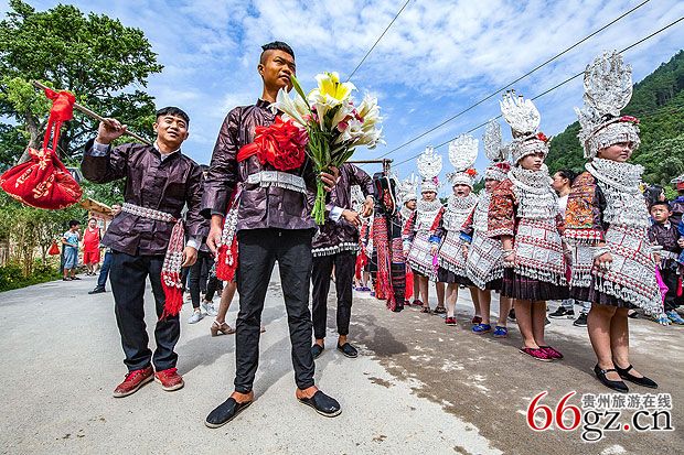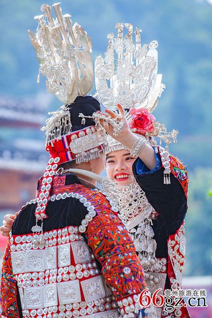 赛前有盛装的苗族少女迎接各方游客,有民俗展示,有迎宾的拦门酒。