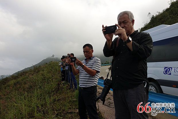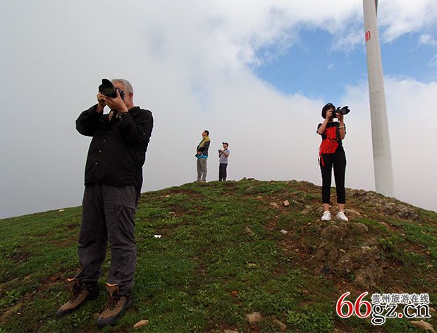 随后,我们一行驱车向上蜿蜒,来到了红阳万亩草场。草场面积近6万亩,最高海拔1760m,东西长10余公里。午后的草场天气变化莫测,站在山顶,一览众山小,颇有韵味。别样的风光吸引着众人目光。