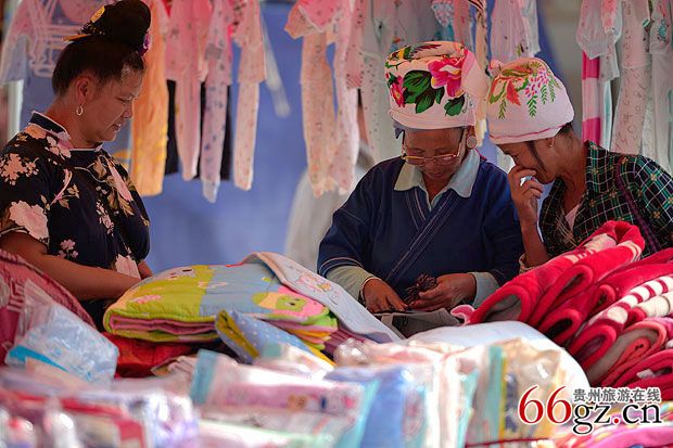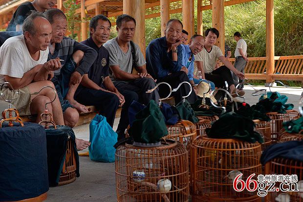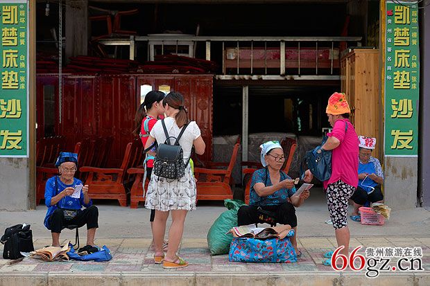 一大早,周边苗族村寨的村民们在集上采购食品和日常用品,出售自家农产品和手工制品。由于最近是打谷子农忙时节,集市上人并不多。不过,穿着民族服饰的妇女们仍是市集上的一道风景。另外,因为苗族男人喜爱养鸟,在苗族聚居地的集市就会有一个特点,那就是你会看到成群的男人围坐在一起赏鸟、遛鸟。只要靠近这个区域,就会听见响亮且此起彼伏的画眉鸟叫。