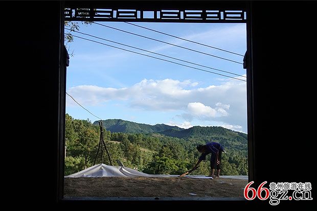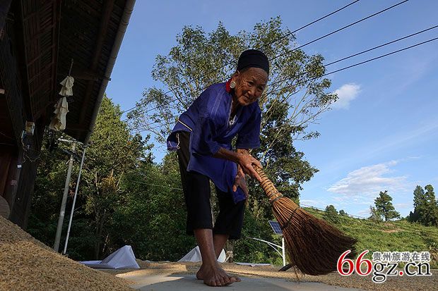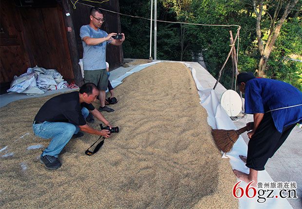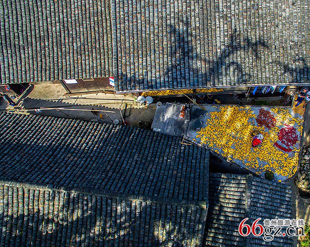 桃树榜自古以来盛长桃树,山寨有成片的古树林,浓荫遍地。尤其是山寨中硕大的银杏树,苍翠葱浓,景致十分迷人。采风成员漫步在山寨的青石板路上,看见绝大多数村民都在忙着晒秋,金黄的稻谷、玉米,红润的辣椒、南瓜,为寨子增添了许多灵动的色彩。深入其中,细嗅鸟语花香,俯瞰炊烟袅袅,未尝不是一种享受。