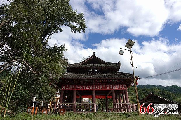 楼高11米,边长7.2米,占地面积51.84平方米。前后留进出通道。左右柱外设置美人靠坐栏,供人坐息。楼中地面有小洞,叫“地鼓”,吃鼓藏起鼓时,先在这里举行仪式,用杉木皮盖住洞口,由鼓主敲击几下,以示追祭,之后大家才可以在踩鼓场踩鼓。