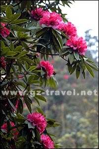 马缨杜鹃、露珠杜鹃、锈叶杜鹃、水红杜鹃、繁花杜鹃、美丽杜鹃、紫花杜鹃...姹紫嫣红、争香夺艳,方圆250平方公里的这一片土地上宛如一个天造神设的具大花盆,点缀着群山起伏的贵州高原,也孕育了一方纯洁的民风民情。
