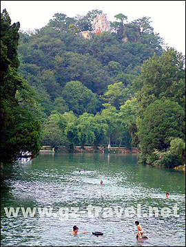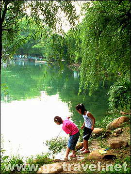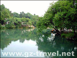 在花溪公园的深处,有名的百步桥就在那里,百步桥是用一块一块的石头放在水中在水中蜿蜒盘曲,当夏天水流急的时候,在百步桥上行走就如同西游记里会踏波踩浪的神仙一样的感觉,真是踏浪而来,逐波而去……