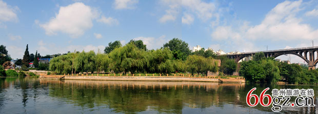 十里河滩是一个以花溪河为纽带,集结了山地、水文、生物以及人文景观,兼具生态保护、科普教育、自然野趣和休闲游览为一体的高品质开放式景区。十里河滩景区的核心是“五区三脉”,有五条主题游览线路。“五区”,即由南至北的湿地游赏区、湿地科普区、花圃展示区、生态核心区、民俗文化体验区。“三脉”指的是,大将山山林生态轴(林脉),原住民民俗体验轴(地脉),花溪河高原湿地轴(水脉)。五条游览线路为:乡野闲情寻旧线、生态科普学习线、手绘大地体验线、定格浪漫拍摄线和沁心怡神健行线。在湿地公园十里河滩畔还有占地面积130余亩的孔学堂建筑群,与大学城共同形成贵阳市风景、历史、文化长廊。