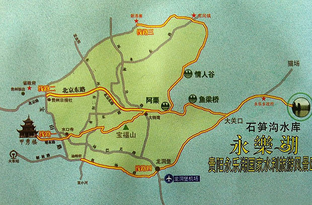 从贵阳市区的甲秀楼、北京东路、新添寨三个方向都可以前往,详情见上图。