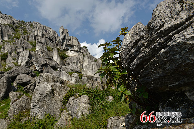 贵州省六盘水市水城县山峦起伏,自然景观众多。在野钟乡境内某个不知名的小村落里,一片石林林立,怪石嶙峋;范围广袤,山光水色各具特色。石牙、峰丛、溶洞、瀑布、地下河等景观错落有致,这里不被外界知晓,但却是户外爱好者的天堂。