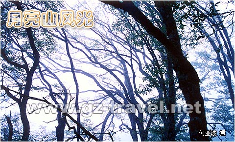 月亮山原生植被完好,自然风景别具一格,千米以上山峰有80余座,主峰顶上有典型的“分水岭”。林中众多飞瀑高悬,水畔林间。山顶,不时可见“佛光”,罕见天象,堪称“童话世界”,生态之秘。