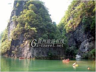 河道蜿蜒迷惑至极,奇峰异岭萦绕,峰回水转,仿佛玩迷藏一般。河岸旁,或远或近,岩溶钟乳千姿百态,星罗棋布;悬崖绝壁似一幅幅美妙的画壁,气势恢弘;山上泉珠在草丛间翻滚而下,岩上泉水珠帘串堕而落,争奇斗妍;银练飞瀑,似悬挂着的白色飘带;溶洞、洞厅交错争奇,洞口似物似型,形象逼真,洞中钟乳层层叠叠,色彩斑斓。河床中:大小粒径沙滩择址分布,河水环绕,滩上各型卵石洁净,玩味无穷;奇型巨石匍匐水中,行动状栩栩如生。河谷里:野猴顽皮,百鸟争鸣,昆虫花姿招展……。自然天成、鬼斧神工开凿雕塑的“夜郎神妍(亦称姊妹石)”景点,其惟妙惟肖的塑型,其地质专家叹为观止的地质构造乃其似乎有规律的数字等,一一蕴藏着科学难以解答的玄奥。