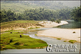甲茶风景名胜区位于贵州省平塘县摆茹镇甲茶村附近,距县城47公里,面积45.1平方公里,景物景观20个。景区海拔402米,属贵州高原上少见的亚热带风光,景区融山、水、瀑、洞、竹、石为一体,汇俊、秀、奇、幽、美于一身,有各自鲜明的特点。奇秀的瀑布,成带成林的刺竹和四季常绿的藤竹及清澈碧绿的河水,金黄的沙滩,神奇幽深的溶洞,景色俊秀的峡谷以及掩映在苍翠欲滴竹林中的布依村寨和浓郁的民俗风情,给甲茶这片神秘的热土增添了迷人的魅力。