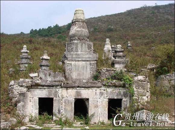 在通往莲花寺道路的左侧一斜坡上,是阳宝山和尚坟地,面积约数平方米,称之为塔林,共有大小塔坟、龛坟、圆坟百余座,小土坟数百座,可见当时阳宝山香火之盛。其规模之大,数量之多,保存之好,贵州恐怕没有二例。