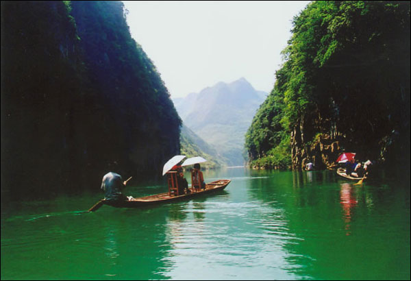 位于平舟河下游5公里处,峡谷长10公里,深邃幽长,奇峰突现,层峦叠嶂,峭壁凌空。河水幽深、碧绿、平静,倒映夹岸的险峰异石、奇树古木,乘一叶扁舟在峡谷中穿行,赏尽无限风光,让人流连忘返。景点内有:“观音洞”、“靴滩”、“象鼻山”、“刀切岩”、“仙人帽”等景物景观。