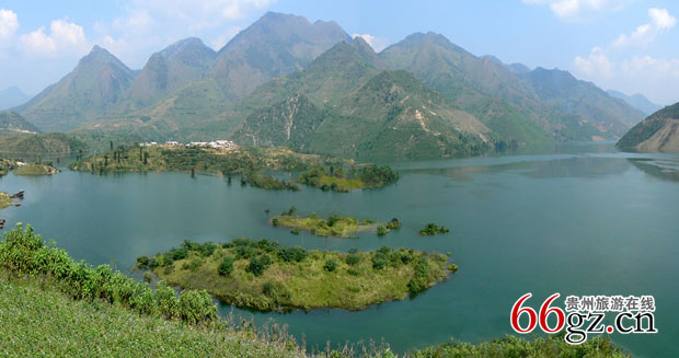 随着红水河下游龙滩电站的建设,近400平方公里水域的 “高原千岛湖”正在罗甸形成,距库区500米的罗甸县城是名符其实的湖滨城市,成为“高原千岛湖”旅游的龙头和始发站,它将广西乐业的天坑、天峨的龙滩大坝、贵州紫云的格凸河、平塘的藏字石等著名景区的山水风光,人文风情连成一条精品旅游线。整个库区水域呈现千岛星罗棋布、水光潋滟的水上奇景。泛舟游览,可赏亚热带美景,观少数民族风情,尝山珍水产、农家佳肴。
