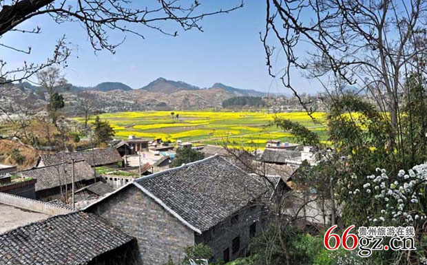 音寨家家户户都在自己的房前屋后山坡上种植李树,每至春分,从音寨极目四望,远山近峦,到处绽开雪白纯洁的李花,这就是远近闻名的盘江酥李之花,恰与音寨河两岸满田满坝盛开的金黄色油菜花形成鲜明对比。白色、黄色交相辉映,粉红色的桃花点缀其间,翠绿色的树丛衬托其底,布依山寨隐约其中,万亩油菜花和千顷李花构织成了“金海雪山”之奇景。