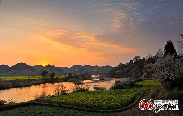 布依村寨都有“布依坐水边”的习俗,音寨村也不例外,村内也有一条弯弯曲曲的河流仿佛从天尽头流淌而来,在寨脚绕了一个弯子又向着地的尽头流淌而去。每逢李子飘香的季节,前来玩水、避暑、摘果的游客也非常多。