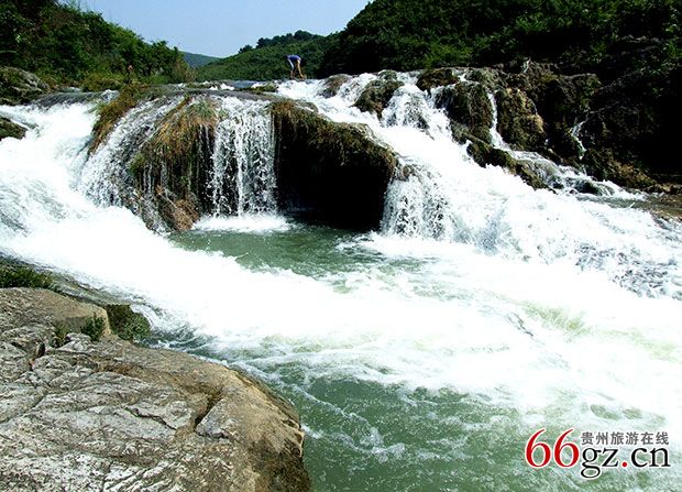 在距惠水县城东大门四十余公里的岗度镇,境内的岗度河、本底河和蛇场下游,由于地壳的运动,分别形成了以王猛瀑布、火龙瀑布、外丈瀑布、打条瀑布、锅底潭瀑布、滴水崖瀑布等为代表的大大小小瀑布数十个,把方圆134.7平方公里的岗度镇装扮得多姿多彩。