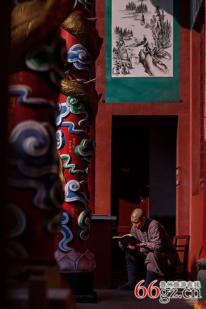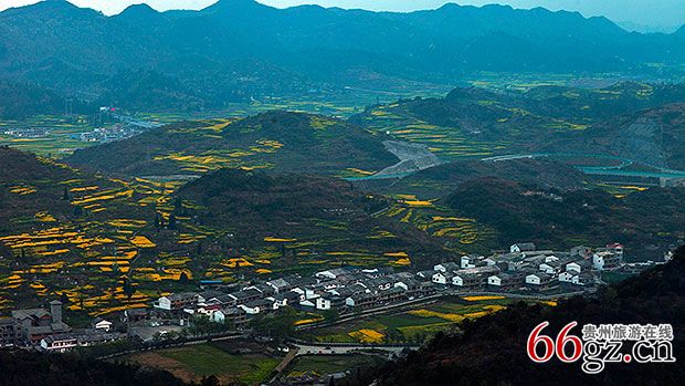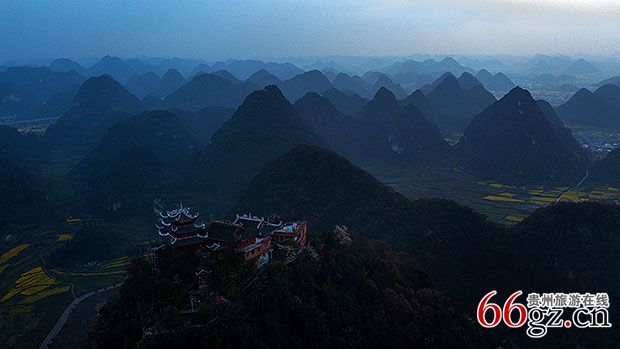 登上寺庙天台,山下的屯堡变成一座彼岸,油菜花成为一个巨大的花海,包围着云鹫峰,风光无限,放眼望去,令人心襟豁然开来。