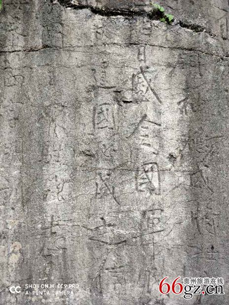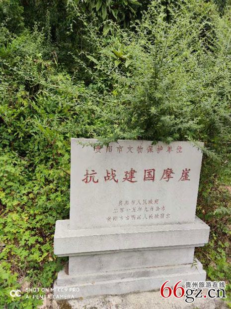 “神圣抗战于今两年。仰赖领袖德威,将士劾命,寇囗日慼……这是贵州省贵阳市贵州省军区山上雕刻的《抗战建国》摩岩十分醒目,让人遐想……