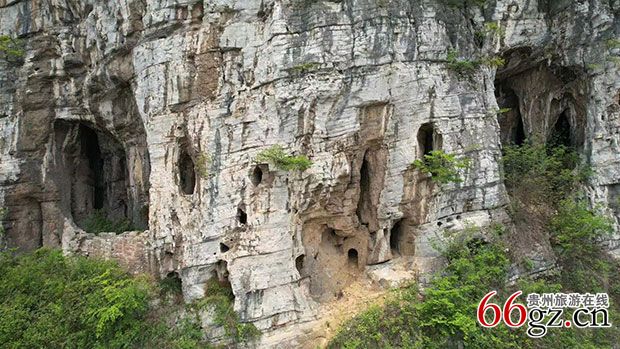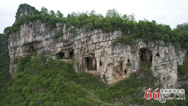 排洞,旧称"小排洞"或"小岩洞",位于流长苗族乡上街村东北面的雷神坡下。雷神坡山形如狮,首尾蹄爪毕具。半山绝壁上,有7个大洞一字排列。每个洞室都很宽大,洞底有伏流,可供饮水。