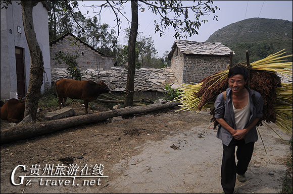 新民乡羊圈村的农舍都是用石头和石板建造的。