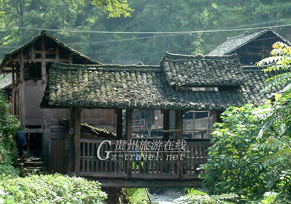 大利花桥位于栽麻乡大利村内,共有5座花桥,数量之多,是侗乡之最。花桥横跨于溪上,均为廊式杉木结构,以其秀美玲珑的姿态将村寨装点得更加美丽。寨中最大的一座花桥始建于清朝乾隆年间,1921年毁于山洪;1955年重建,桥面由七根杉木并排铺架而成,长10.7米,宽3.1米,跨度9米,高2米,上建长廊,廊高4米,四排三间,每排四柱,悬山顶小青瓦面,长廊两侧设有栏杆,高1.2米,靠栏置长凳,供人歇息。