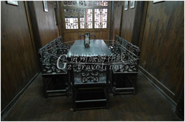 坐落在贵州省黎平县城德凤镇二郎坡52号,是一座清代中叶的古代建筑物,分三进五间,前低后高,上盖小青瓦。大门是两扇石臼合门,临街铺面,商店字号。由大门进入第二进正屋的天井,墙上有一屏风,塑雕有狮、鸟、鱼类,左右为扇式书房;正堂门面塑二龙戏珠;楼上走廊四周是卷板方格栏杆,窗权精雕细刻;左间摆设八张太师椅和两张八仙桌,当时的会议就在这里进行。房后有小天井,墙壁上有八仙过海、太白醉酒等壁画,壁间开有一石臼合门进入后院。会址占地面积近 1000平方米 ,高约 20米 的封火墙围绕,森严幽静。