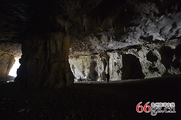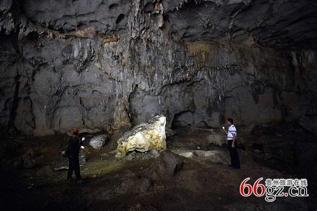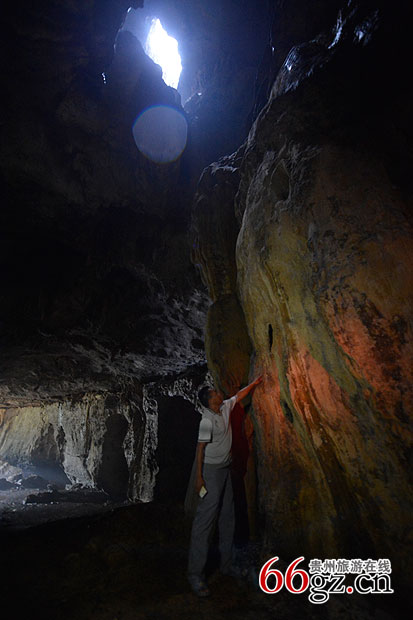 贯洞村瞿村长指着一块石幔上的几个坑上,这是吴勉踩的脚印。